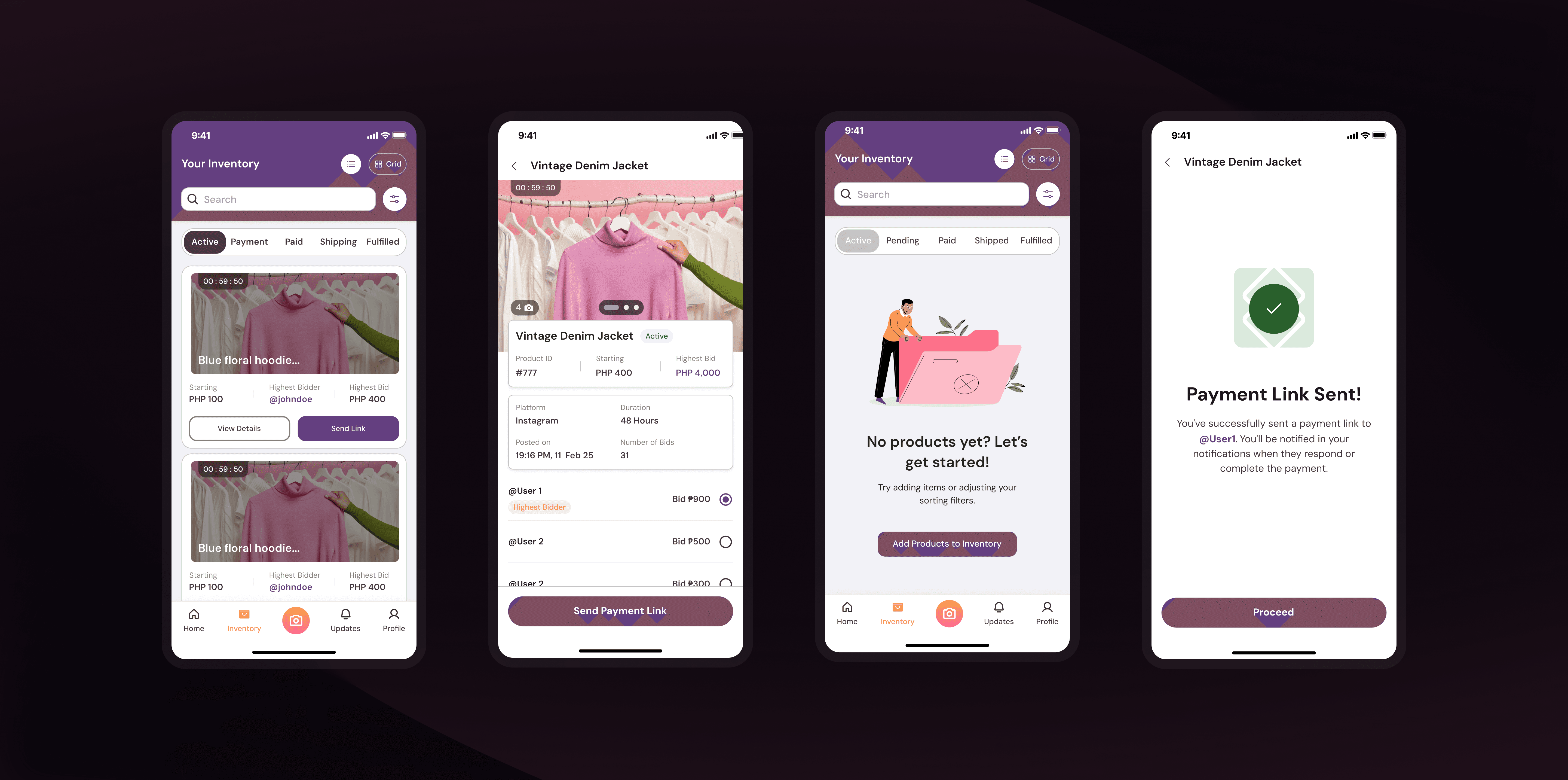 We identified our users small-scale sellers and side hustlers looking for simpler ways to auction and manage their sales.